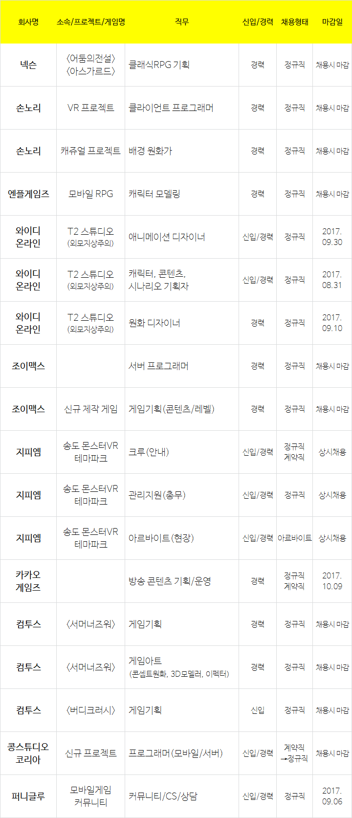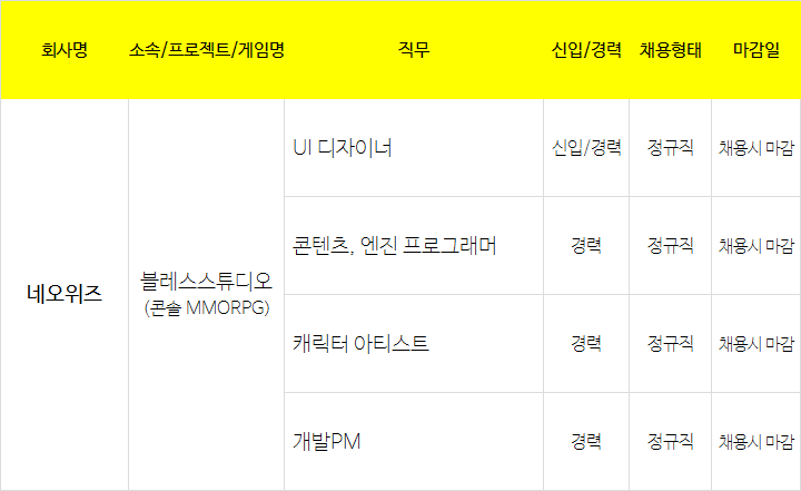(주)펄어비스(이하 '회사')는 귀하의 개인정보보호를 매우 중요시하며 『개인정보보호법』 등 관련 법령의 펄어비스 1층 방재실. 현장실습 인턴 채용에 따른 지원 안내(네이버, 코오롱글로벌(주), 미디어로그, 한화손해보험, 나스미디어) 2021.06.08. 쿡앱스 미드코어 장르 게임 운영 담당자 인턴 / 3개월. 창업 1년 반 만에 직원 220명의 성공신화를 이룬 줄스(앤 해서웨이). 펄어비스와 함께 세계 최고의 게임을 만들어갈 인턴사원을 모집합니다.